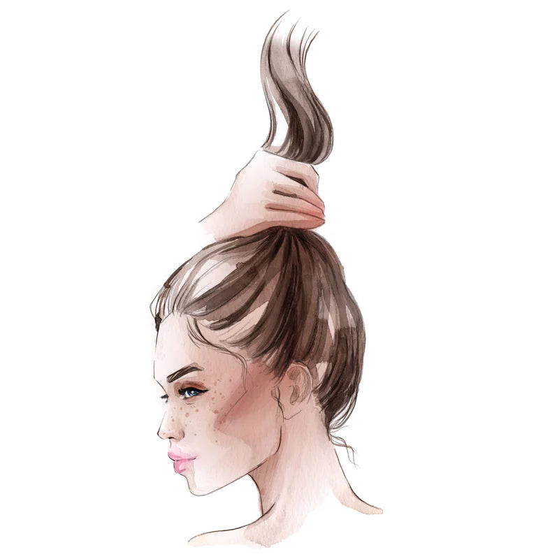 Recoge tu cabello en una coleta alta en la coronilla de la cabeza.